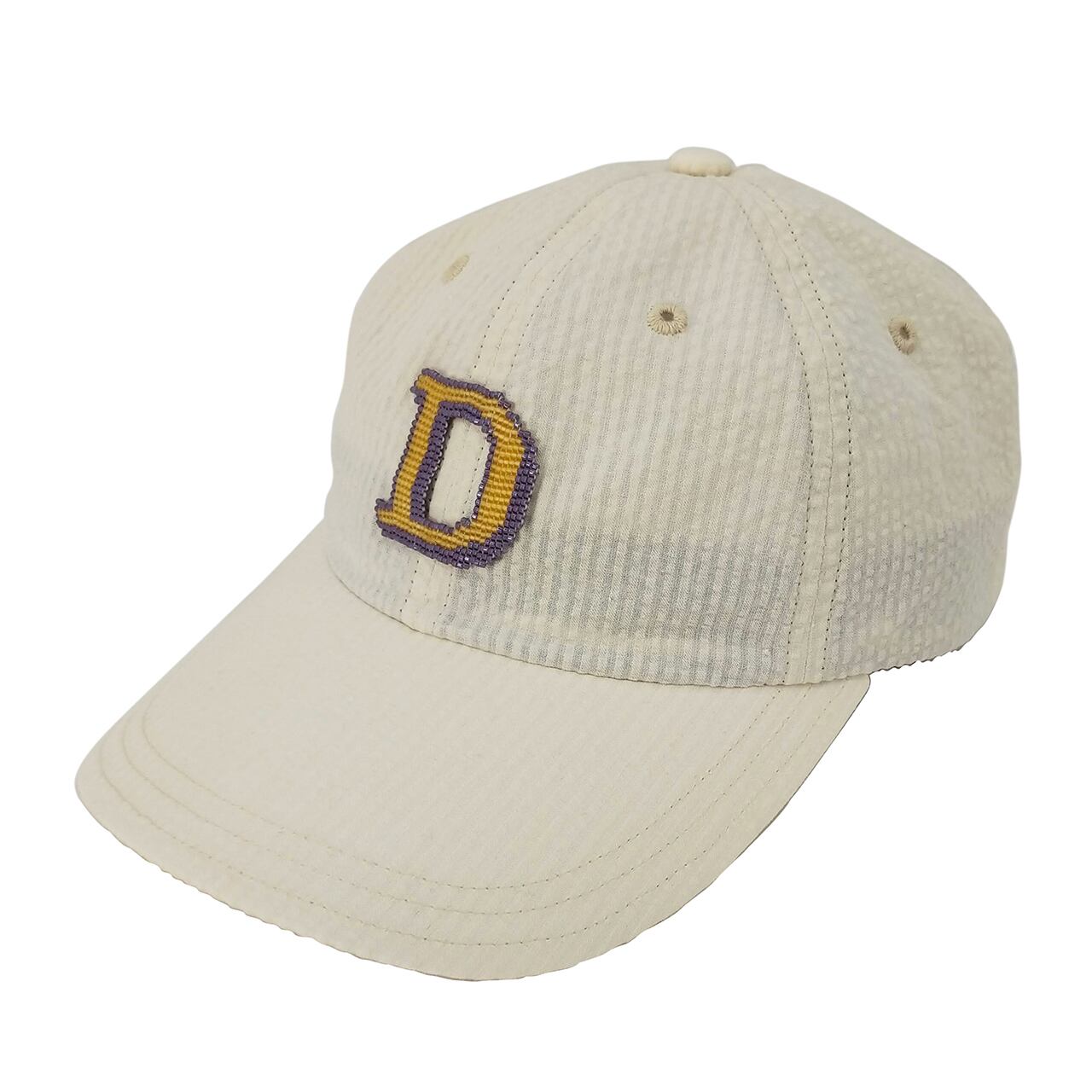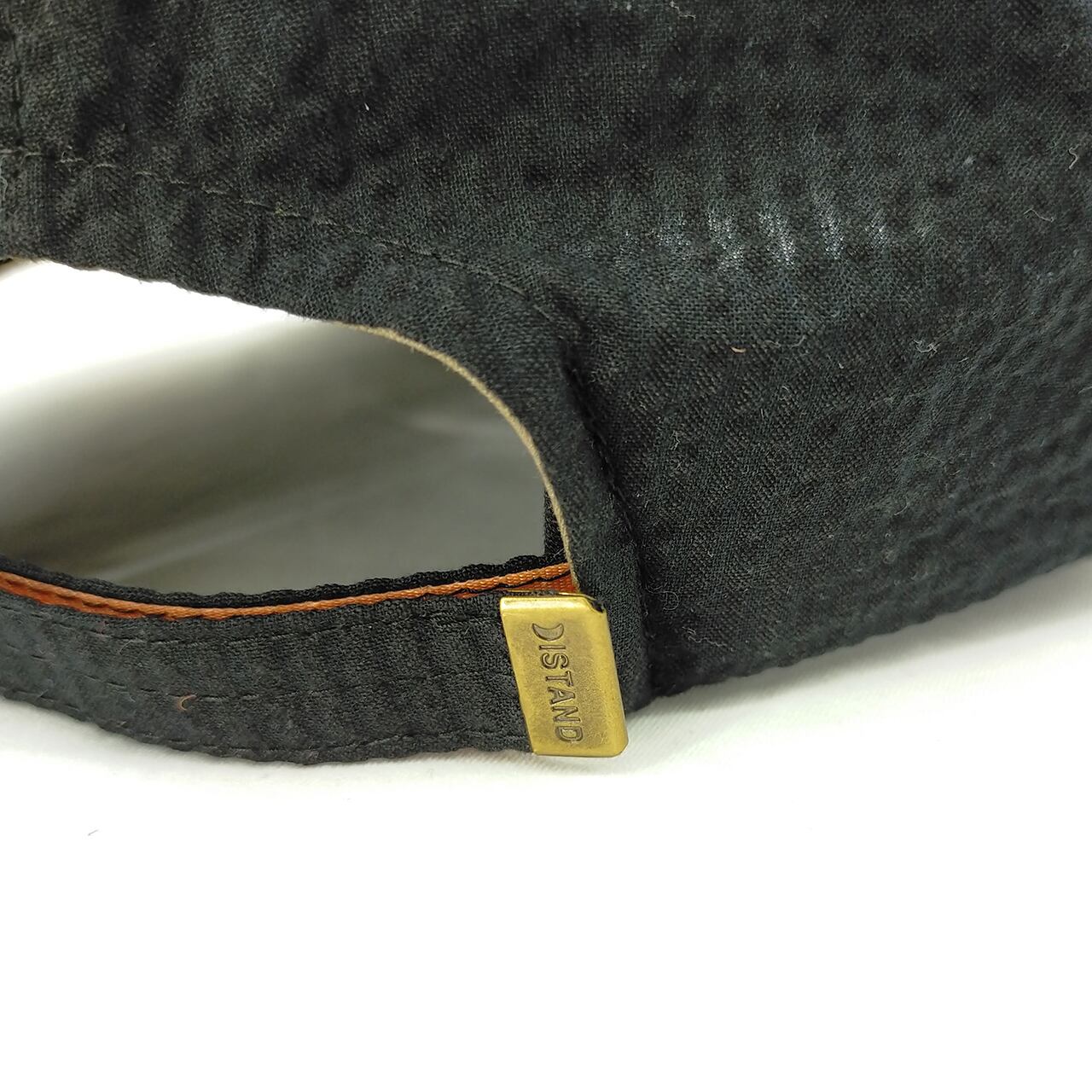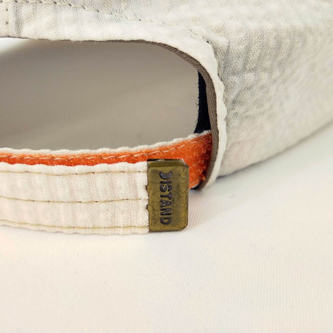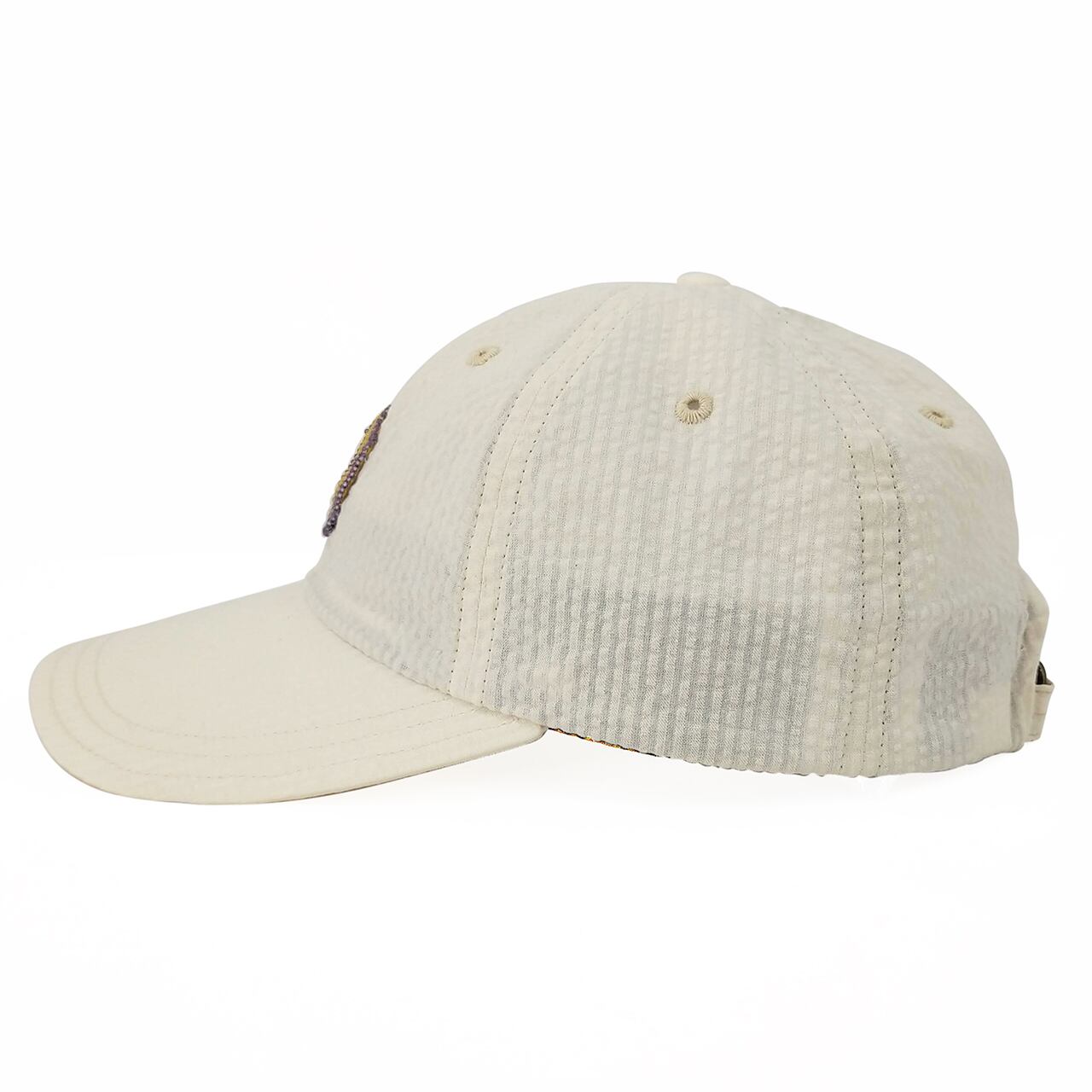 DISTANDではお馴染みのビーズ刺繍シリーズ。今回は涼しげなサッカー素材にトーンを抑えたカレッジモチーフで往年のアメカジテイストに仕上げました。型は、前方が浅く後方は深いDEEP BACK。ブリム幅も広くしバランスを取りました。