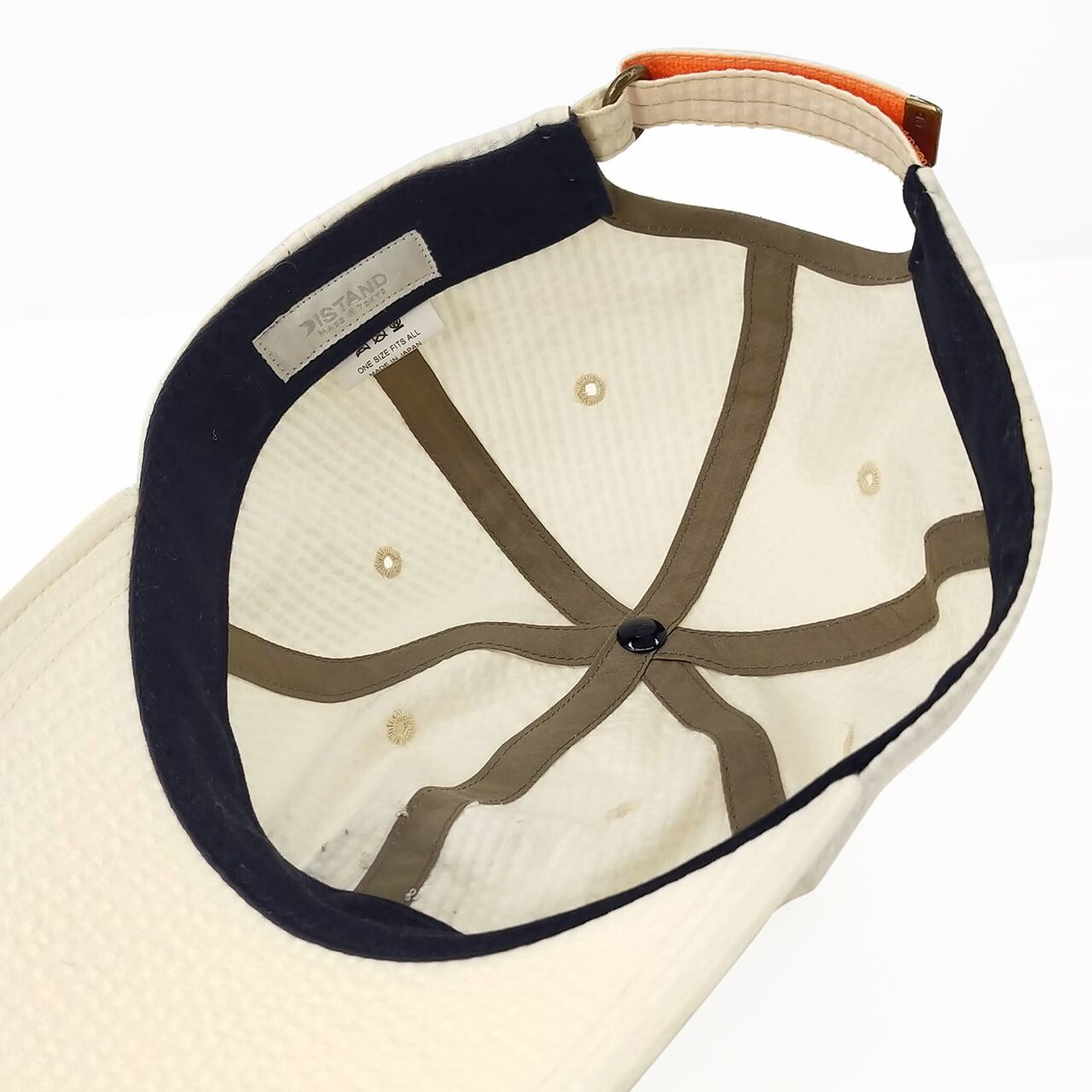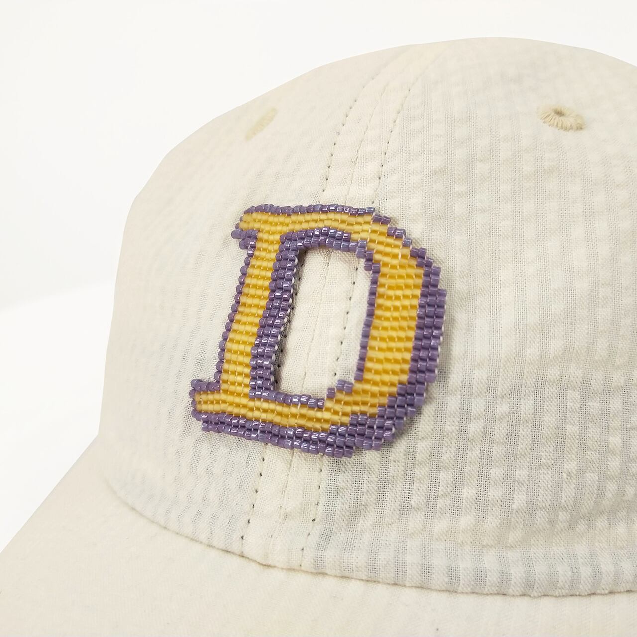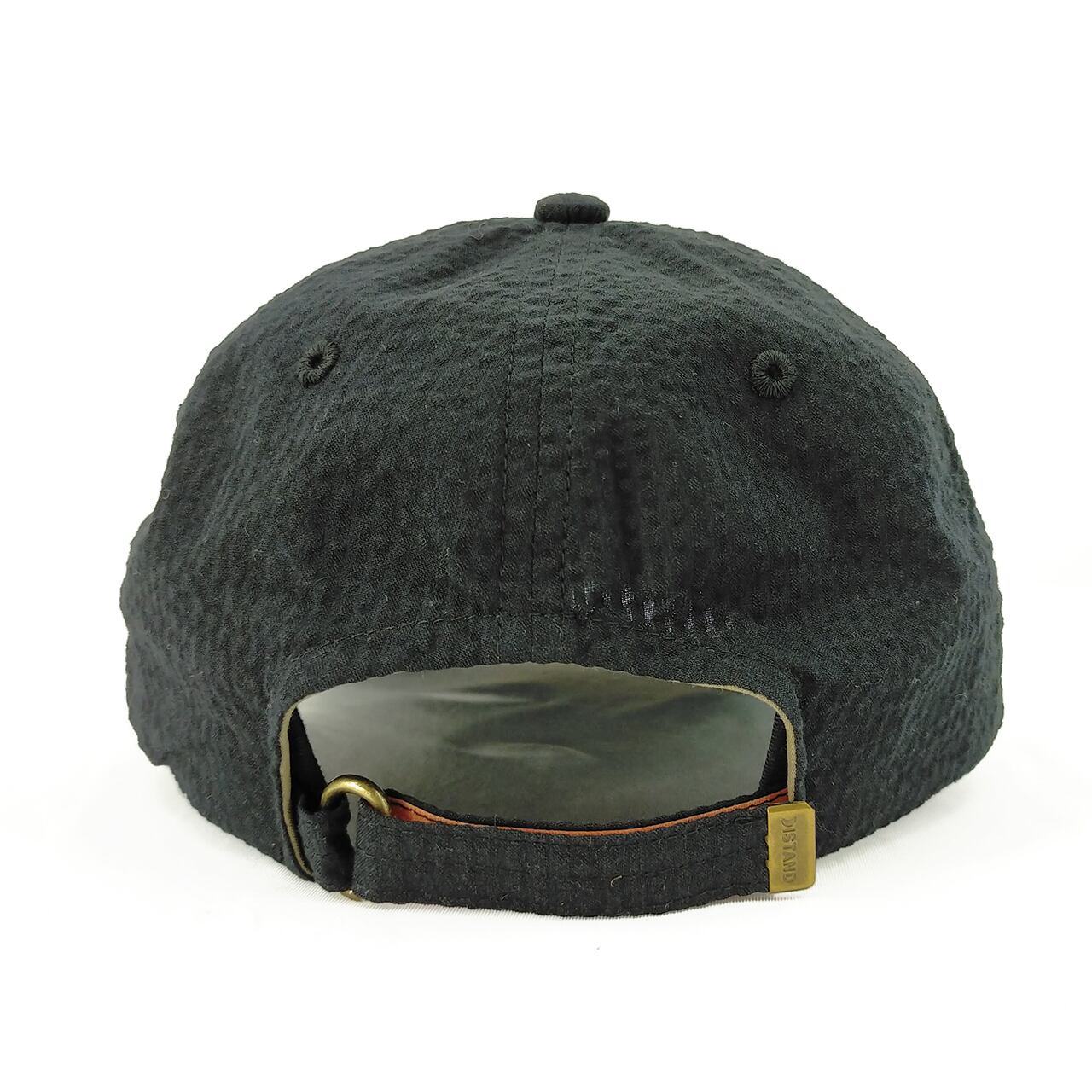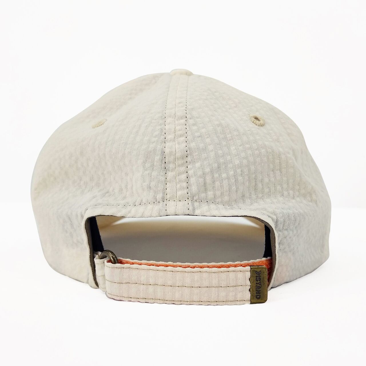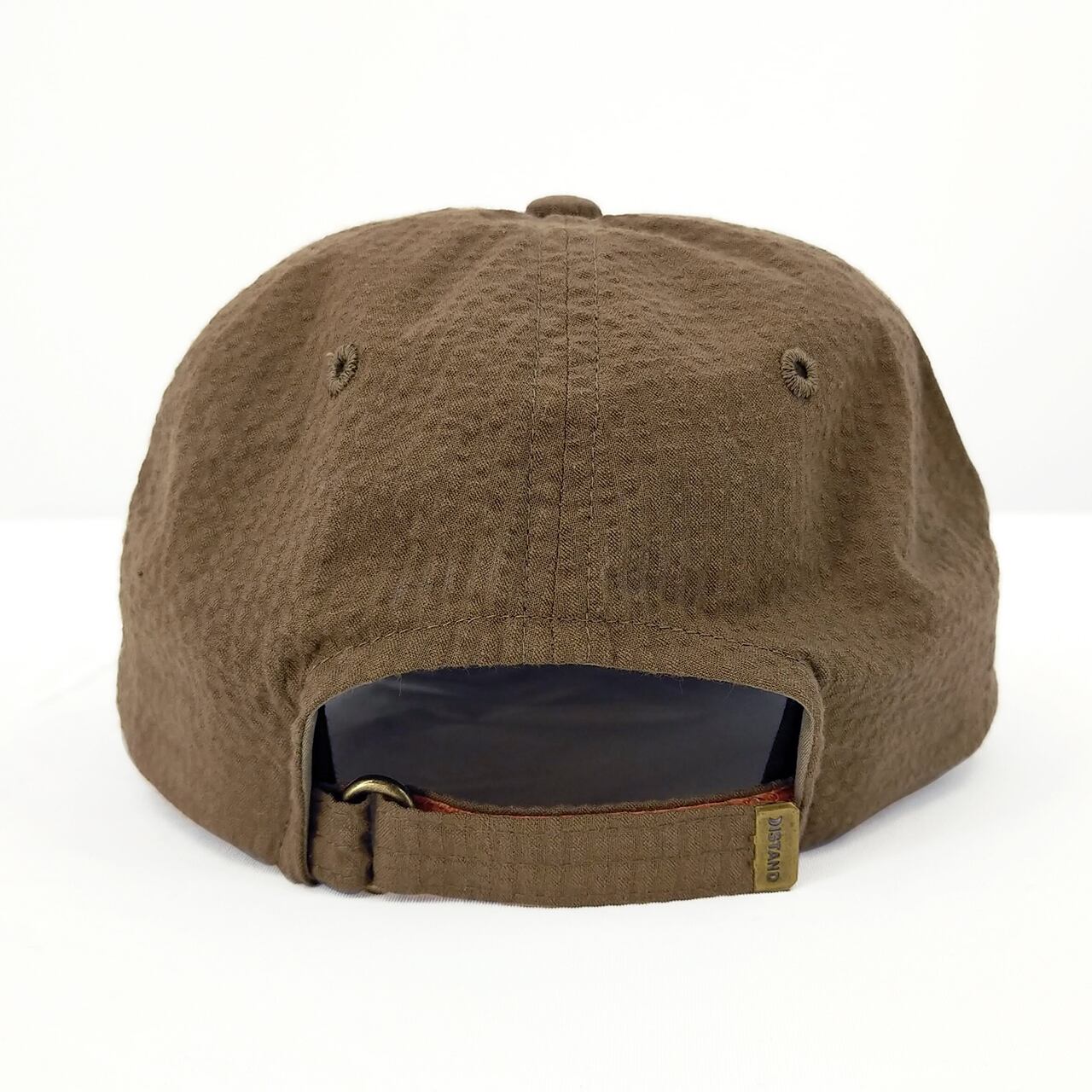 DISTANDではお馴染みのビーズ刺繍シリーズ。今回は涼しげなサッカー素材にトーンを抑えたカレッジモチーフで往年のアメカジテイストに仕上げました。型は、前方が浅く後方は深いDEEP BACK。ブリム幅も広くしバランスを取りました。