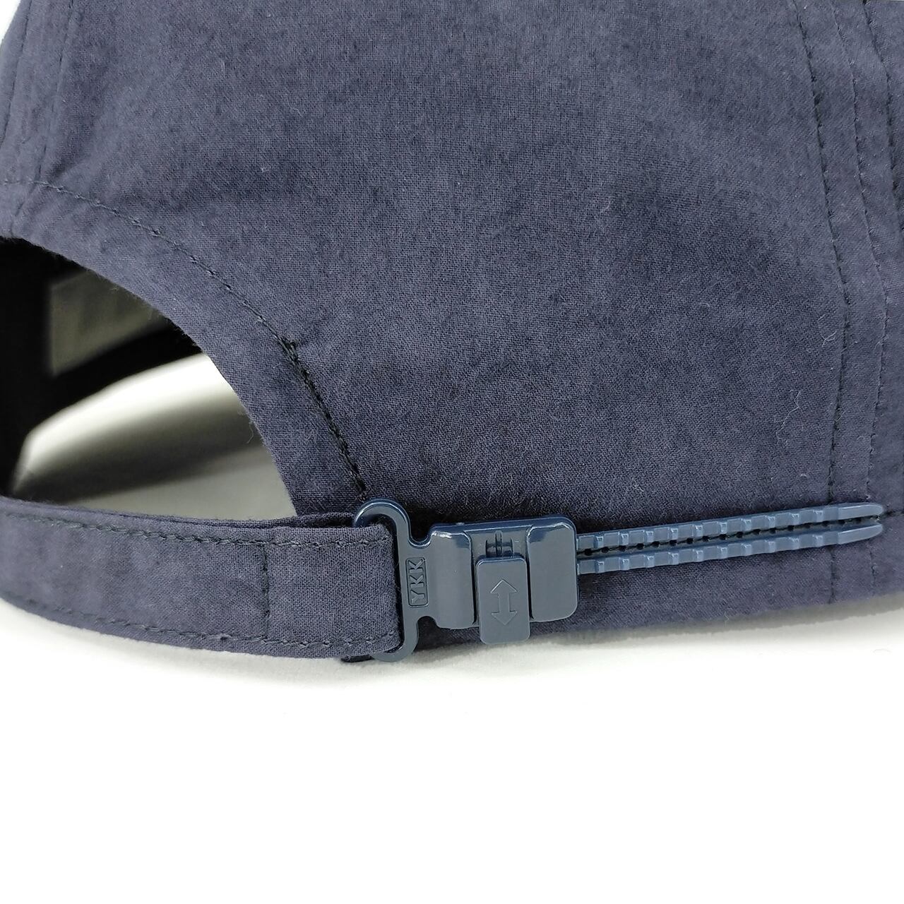 トラッカー型を若干浅めにアレンジしワイルド→マイルドな印象にしています。素材は、硫化染で適度にムラのある表情がこなれた印象です。レトロな配色のロゴとレールアジャスター仕様でクラシックマナーに気をつけました。